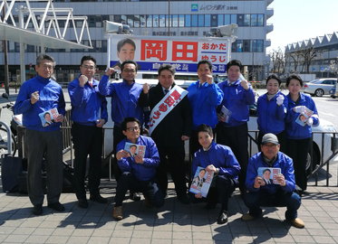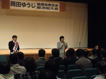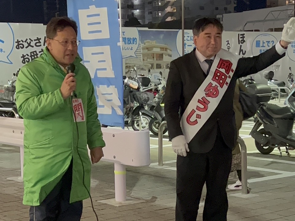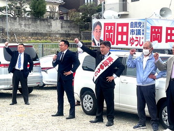 ![]() 出陣式に駆け付けて下さった 奥谷謙一県議、岡毅県議 |