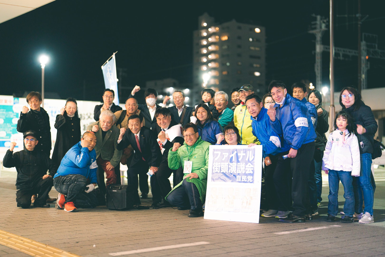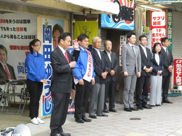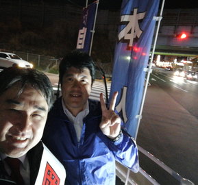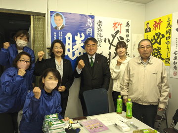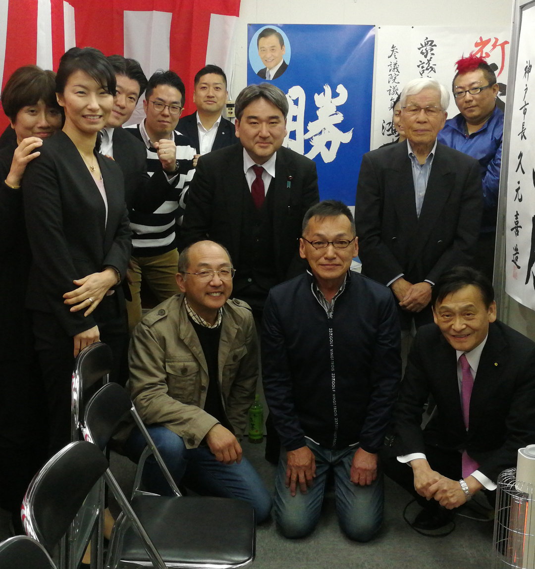 ![]() 選挙事務所前で出陣式 末松信介先生が激励 平井真千子市議も来援下さいました |
