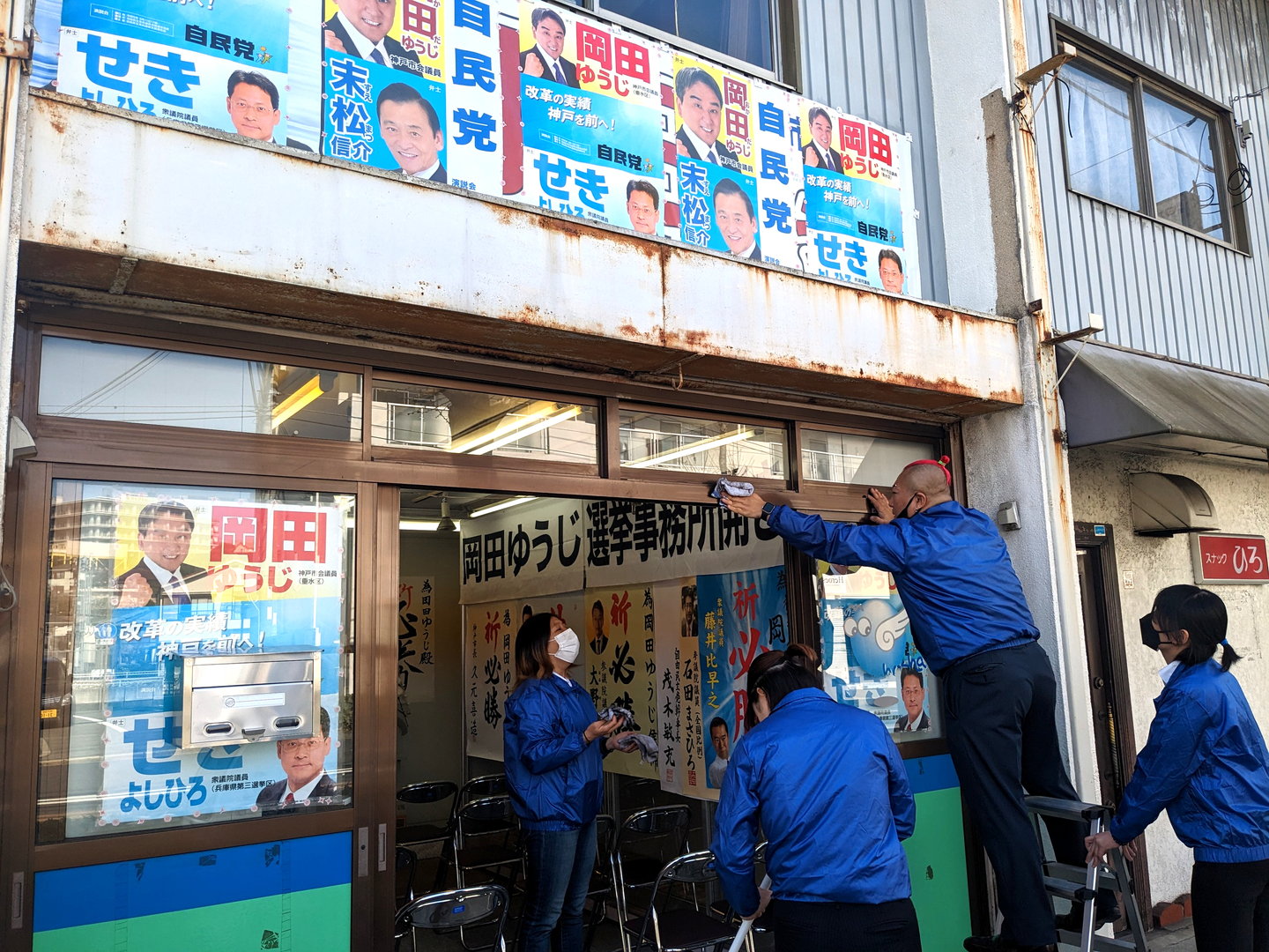 ![]() 選挙事務所の設営 西崎家の皆さんが汗をかいて下さいました |
