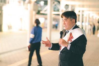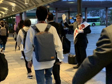 ![]() 末松先生らが見守る中 初めての演説 想いを訴えました |