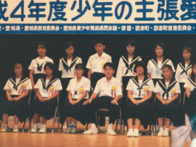 ![]() 1992年少年の主張愛知県大会の記念撮影。 前段中央が岡田。 |