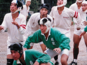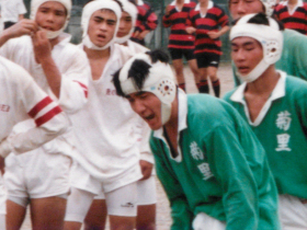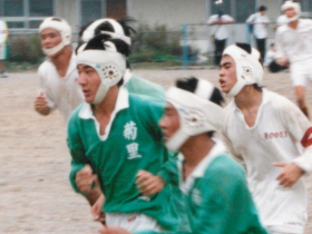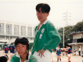 ![]() 高校時代は ラグビー部でした。 立っている方が岡田。 | ![]() 部活動写真その2。 |