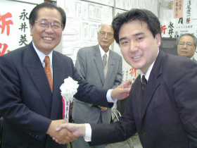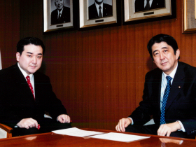 ![]() 2005年 小泉純一郎総理と。 | ![]() 安倍晋三総理と。 自民党本部にて。 |