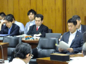![]() 同じく衆議院 環境委員会にて。 右は細野豪志環境大臣。 |
