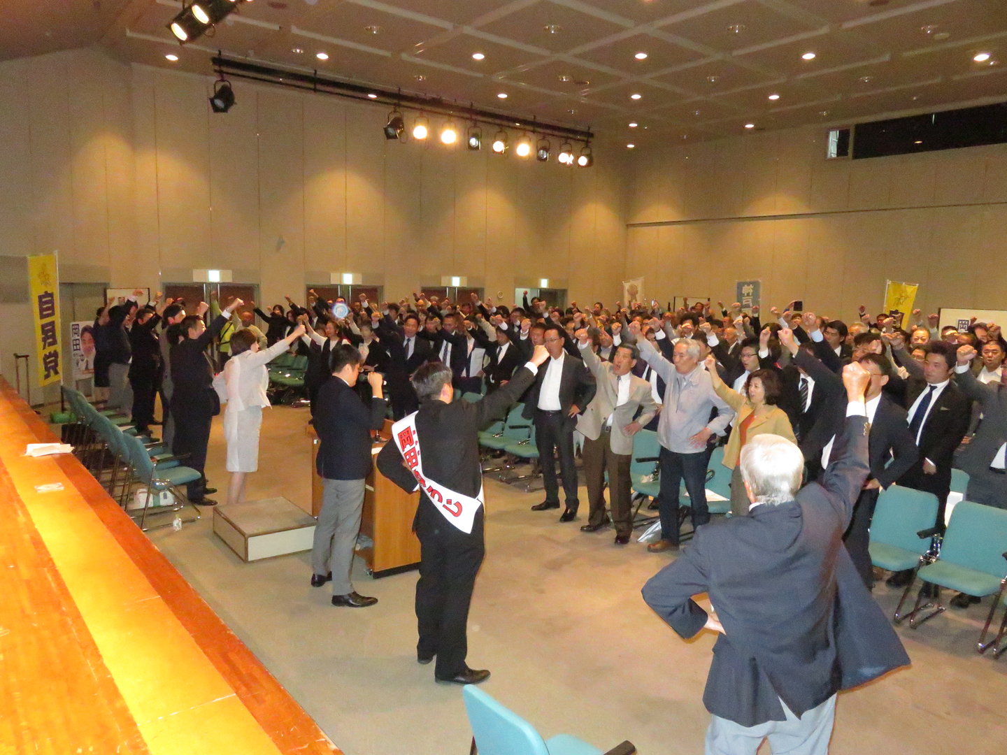 ![]() 党青年部の三嶋裕之先生による ガンバローコール |