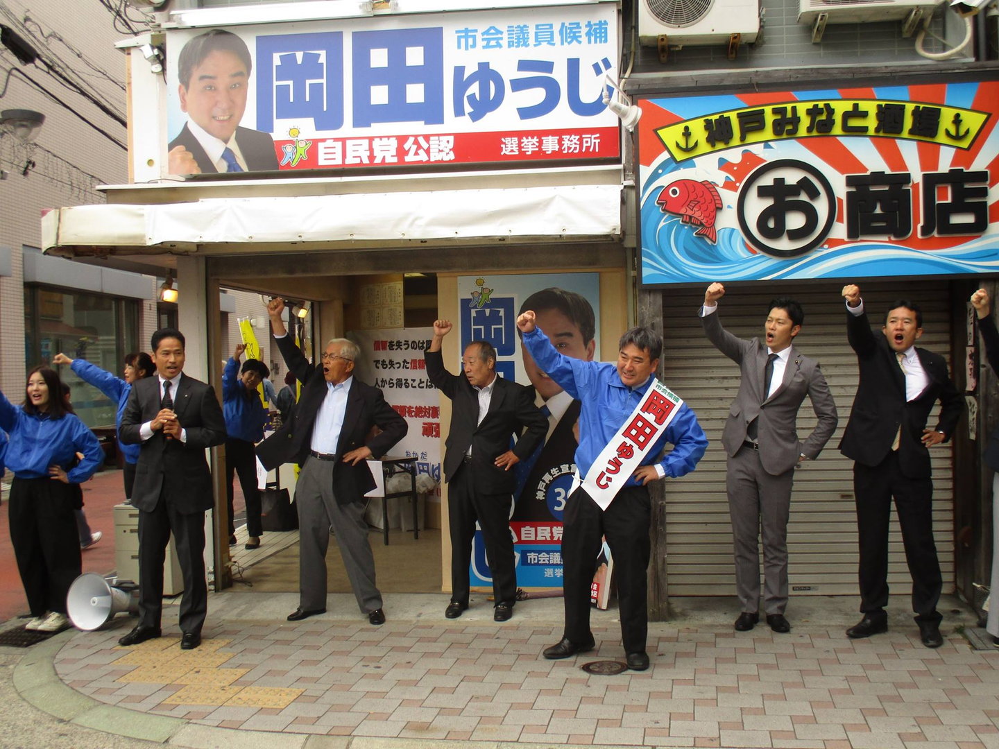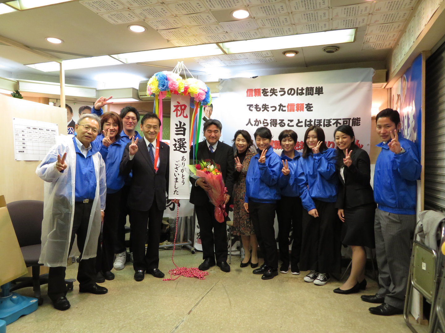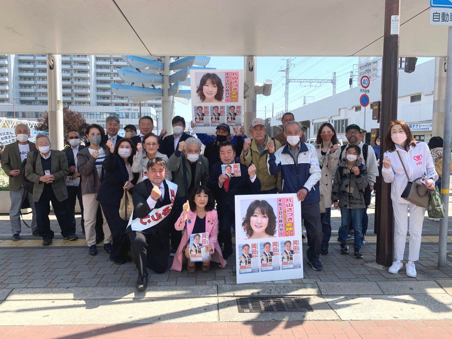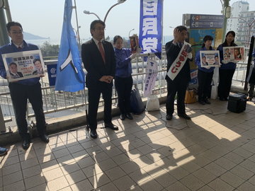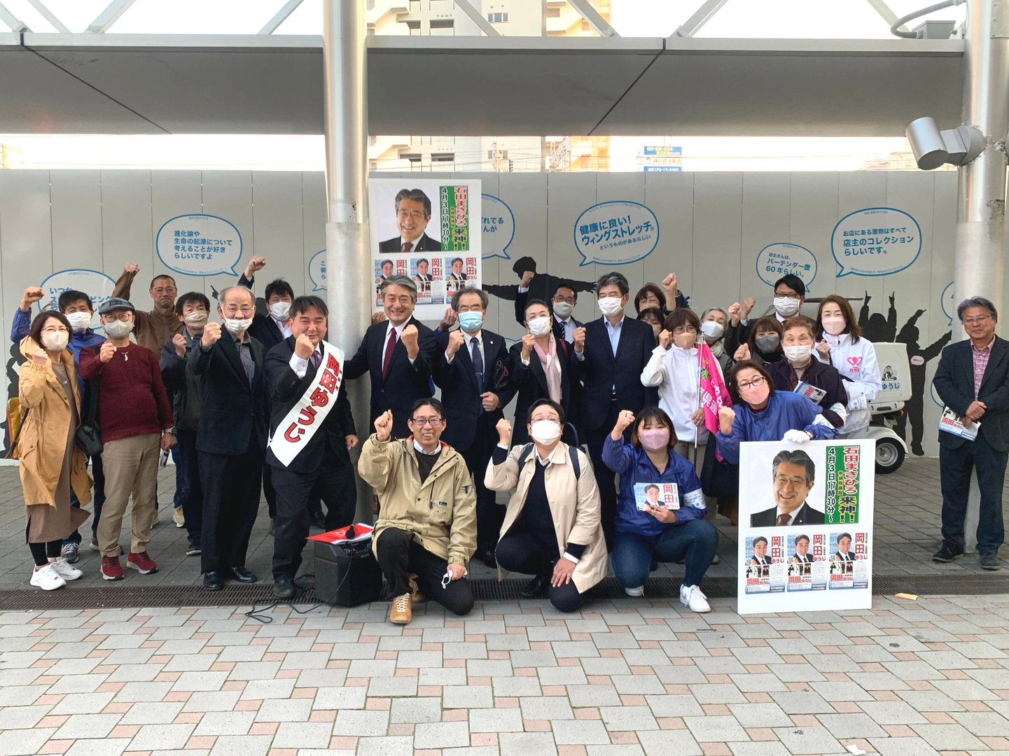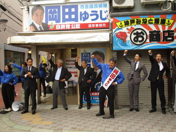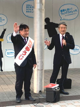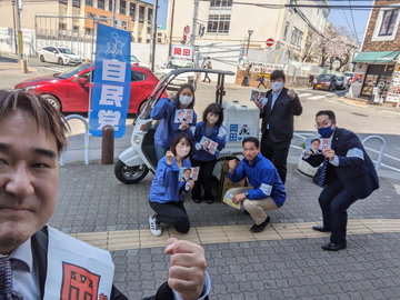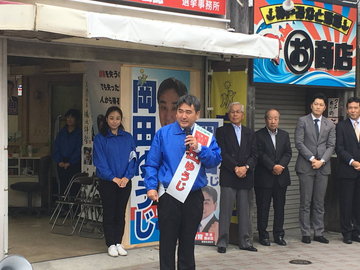 ![]() 選挙事務所前で出陣式 末松信介先生が激励 平井真千子市議も来援下さいました |