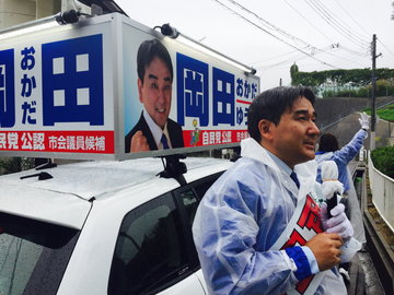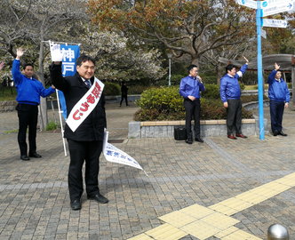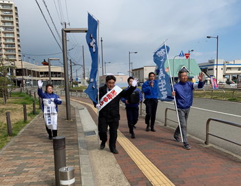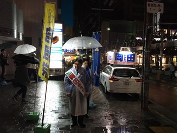 ![]() 雨がちの選挙戦 五色山で辻立ち |