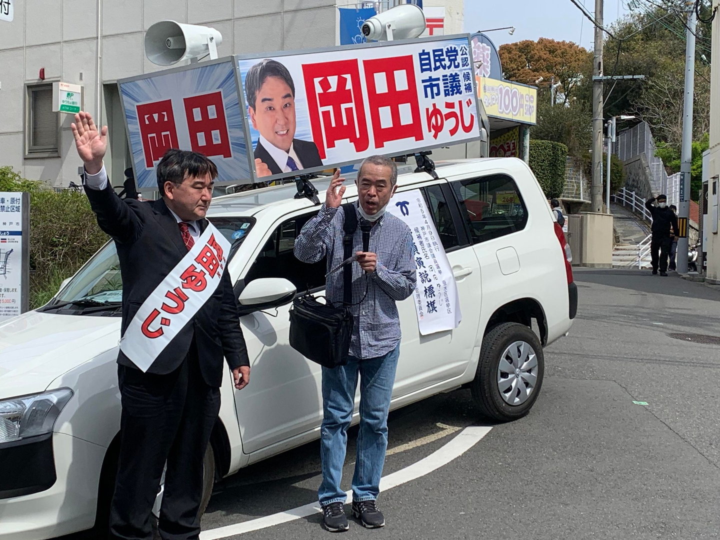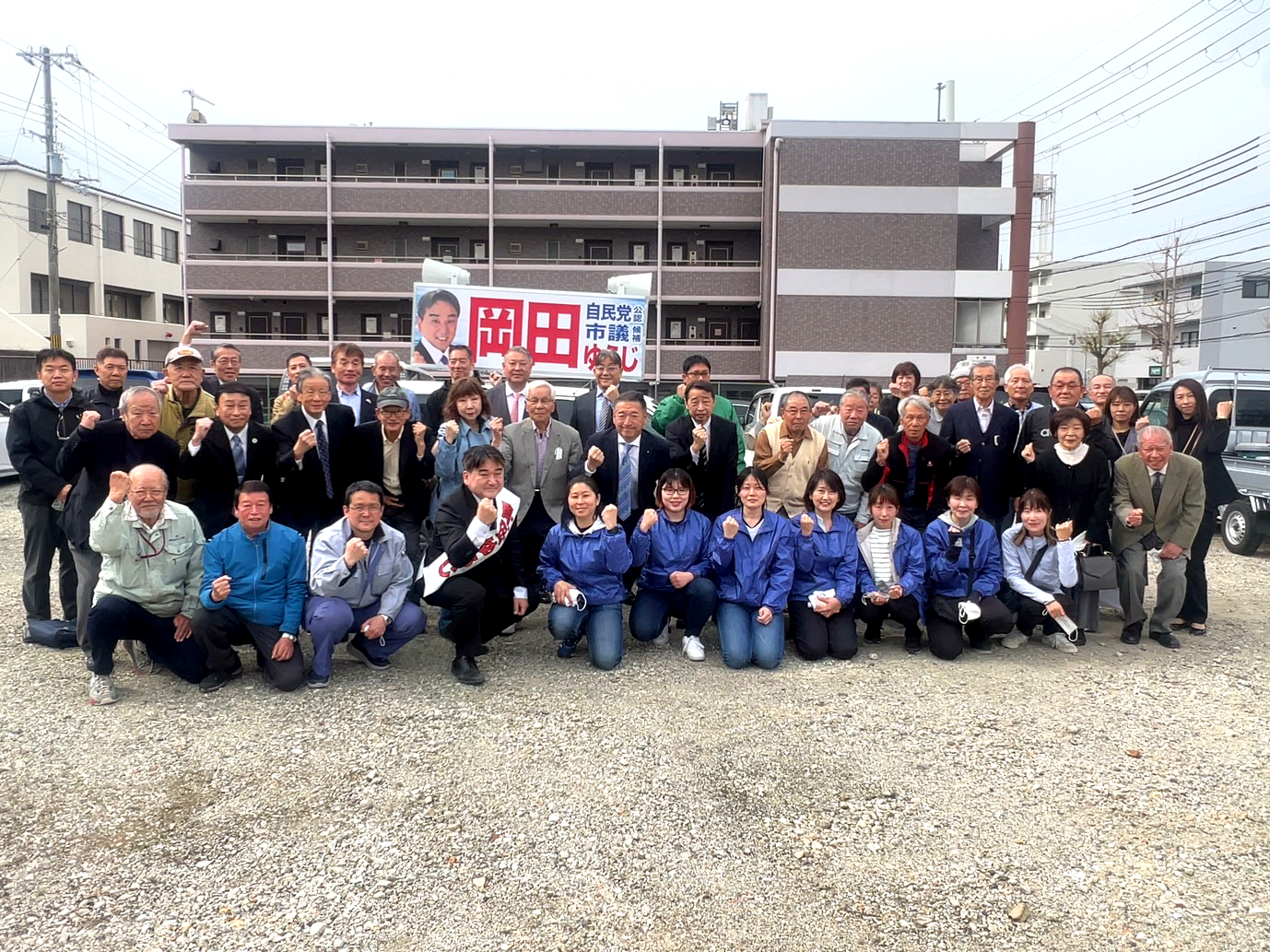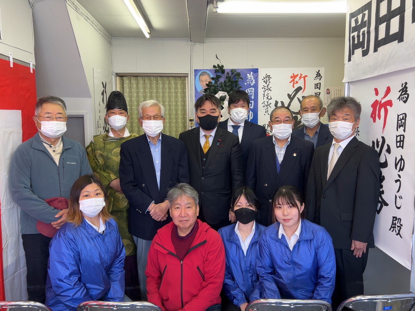 ![]() 出陣式に駆け付けて下さった 奥谷謙一県議、岡毅県議 |