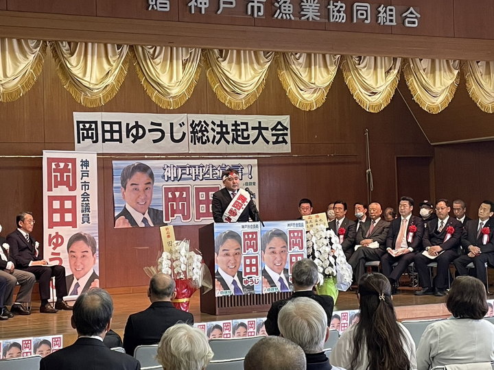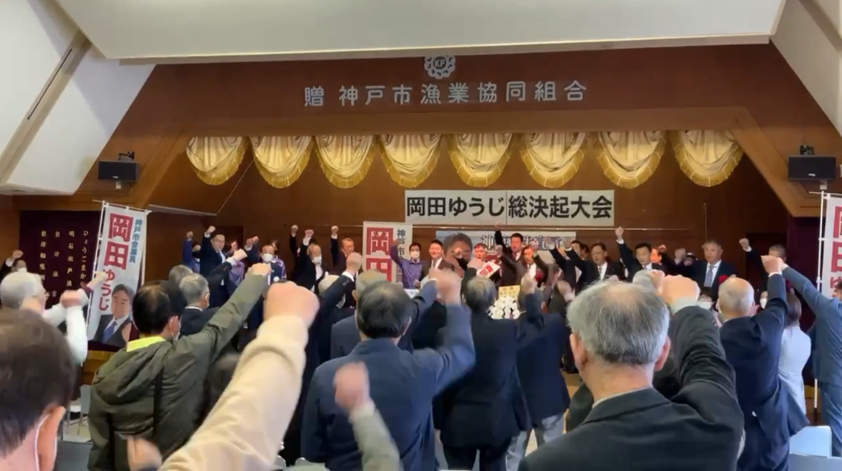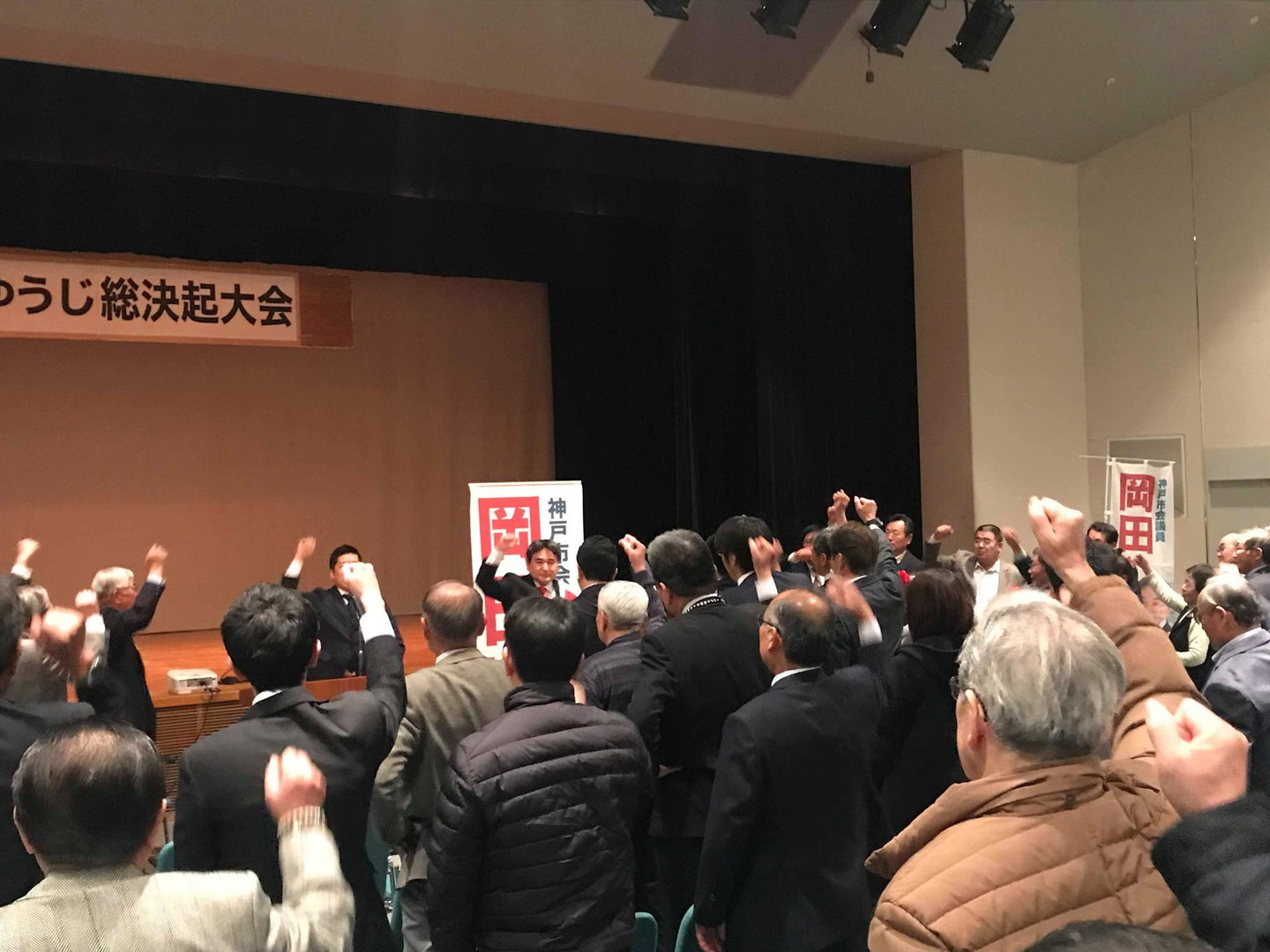![]() 出陣式に駆け付けて下さった 奥谷謙一県議、岡毅県議 |